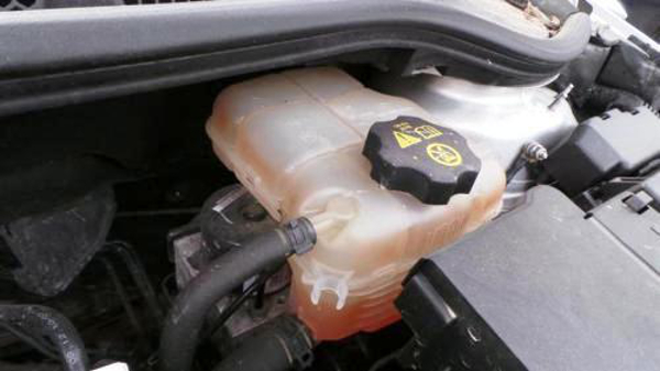 Variklio skyriuje reikia surasti aušinimo skysčio bakelį, bakelio dangtelis yra su garų simboliu ant viršaus.