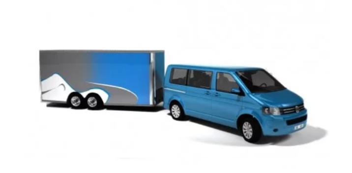 63. Pasakykite, kaip saugiai pakrausite ir pritvirtinsite krovinį šio transporto priemonių junginio priekaboje.