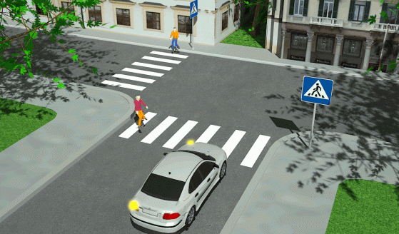 Prieš įvažiuojant į sankryžą, svarbu įvertinti ne tik artėjančius automobilius, bet ir pastebėti pėsčiuosius, įžengusius į važiuojamąją dalį.